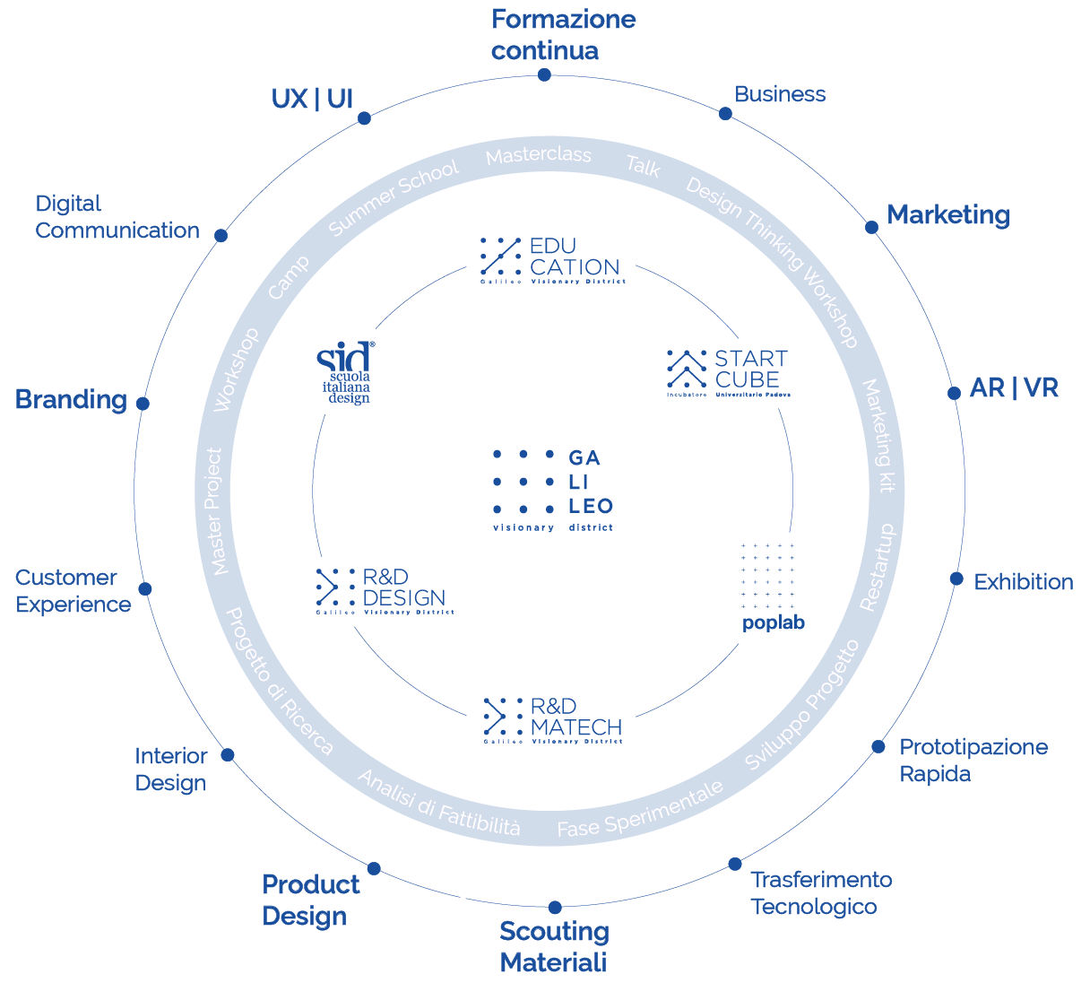 Galileo Visionary District is the national and international benchmark for research and innovation, a place of growth for companies, students and startuppers. In addition to SID, three other divisions are part of the districts that make up Galileo: Start Cube, R&D MaTech and R&D Design.