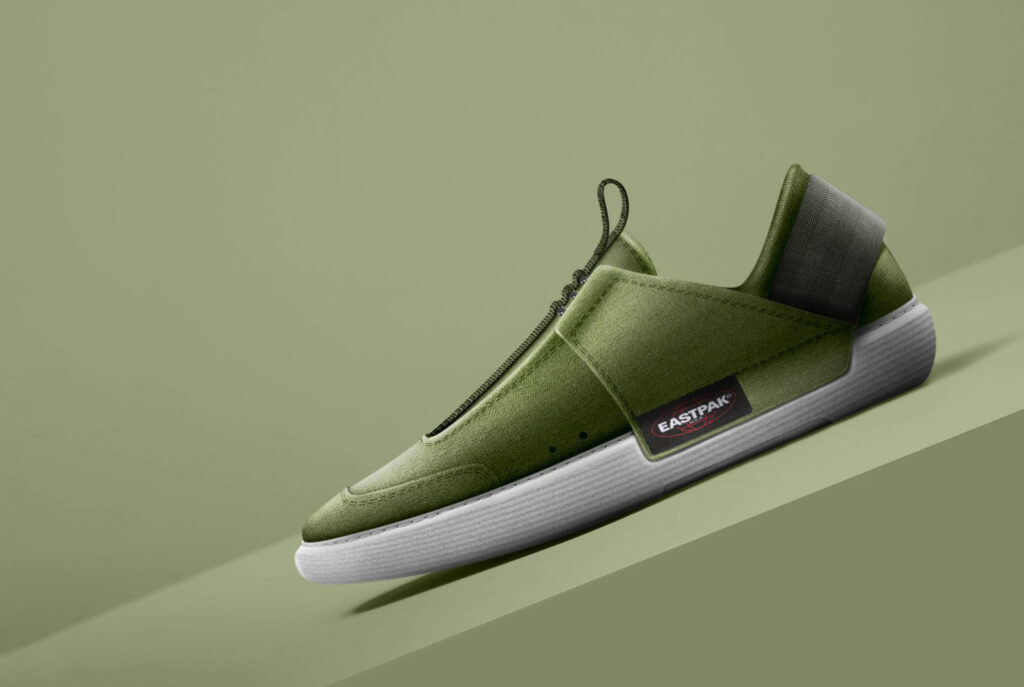 Authentic Green è il risultato di un percorso progettuale volto all’ideazione di una calzatura iconica e sostenibile, che incarna i principi dell’economia circolare e sia coerente con il brand Eastpak. Il concept vuole interpretare i valori brand, andando a spodestare la convenzionalità con cui vengono progettate le scarpe, ed è inoltre un rimando alla campagna Authentic Green lanciata da Eastpak nel 2007 e che vede un’attenzione verso l’impiego di materiali rigenerati.
