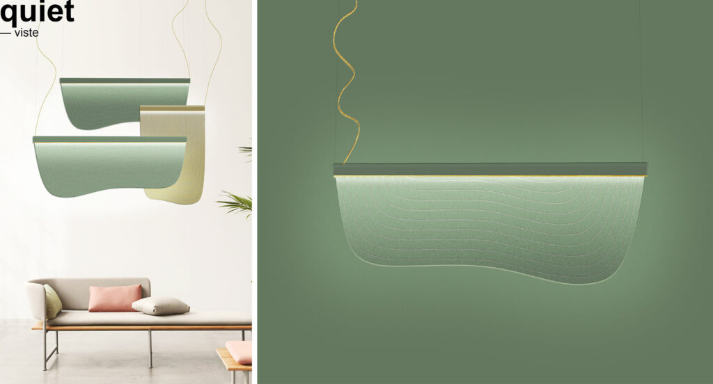 Rappresenta la quiete, l’armonia, il silenzio. Un sistema di lampade integrate su supporti fonoassorbenti, evocano la sensazione di pace e tranquillità grazie ai disegni superficiali ispirati alla natura e filosofia zen.